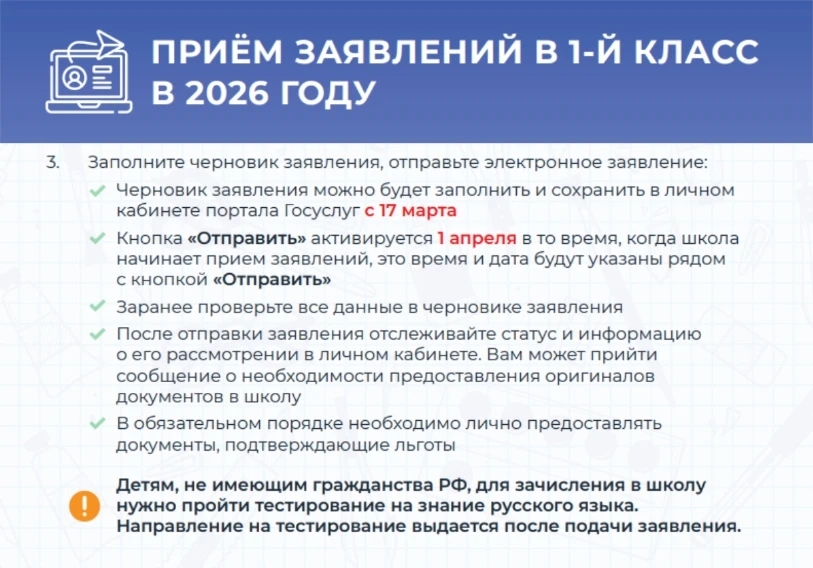 📢 В Кунгурском округе запись в первый класс стартует 1 апреля, но подготовить черновик на Госуслугах родители могут уже сегодня, 17 марта.